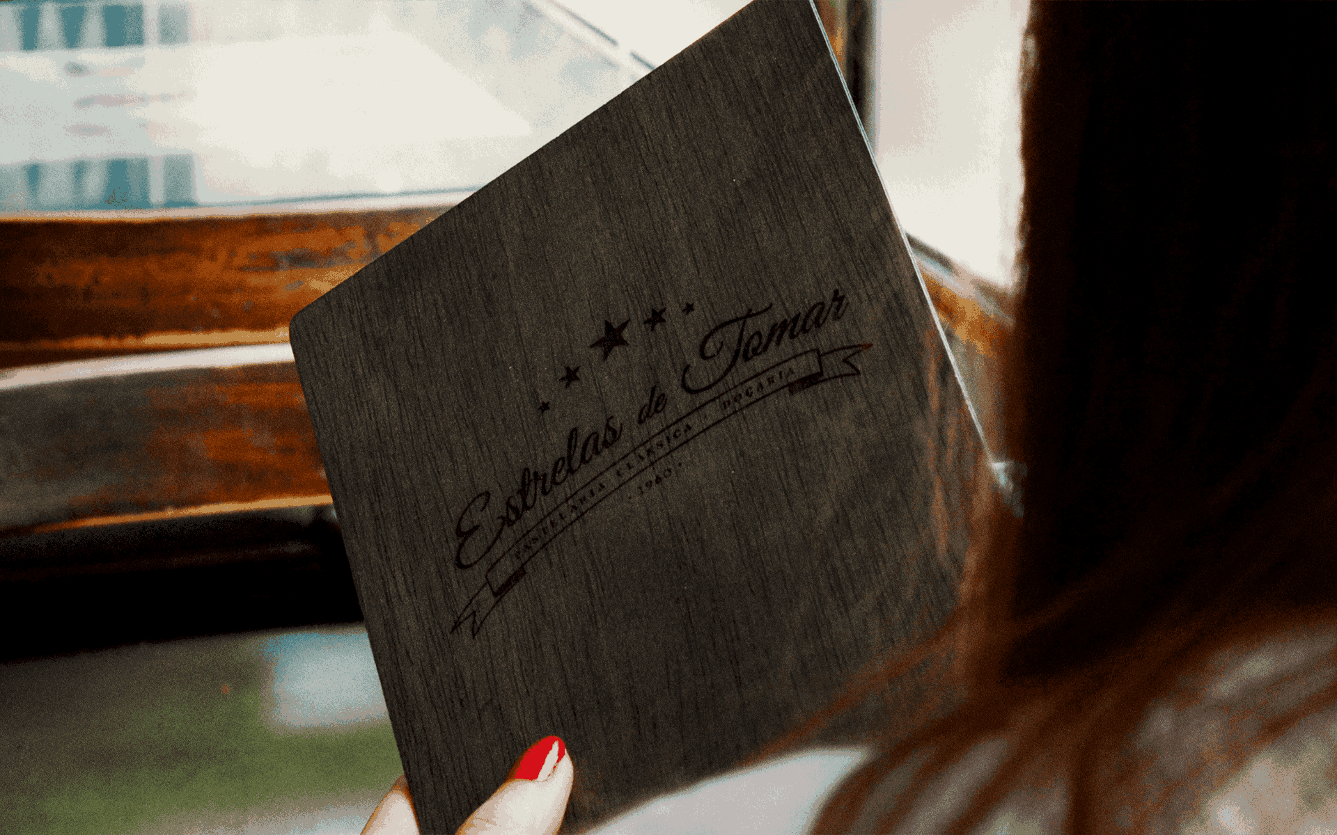A central section is dedicated to the history of Estrelas de Tomar, turning the menu into a narrative piece.