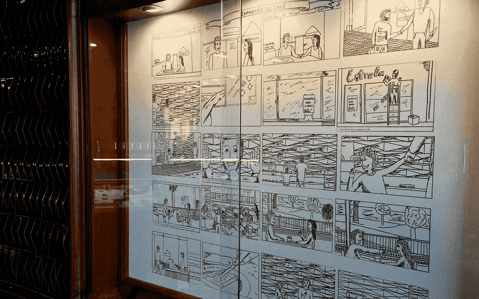 The interior of the space was designed as a “living book” of Estrelas de Tomar. Five comic strip panels tell the story of the brand’s evolution, from its foundation to its new management and expansion, using simple and emotional strokes. Each panel is a page that customers can “read” and feel, creating a genuine connection with the story.